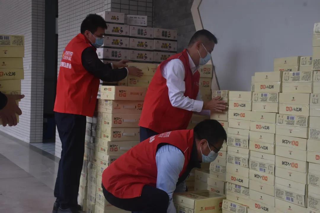 这一批捐赠食品包含马蹄八宝粥500件、菠萝八宝粥500件、桔片爽500件、蒜蓉辣酱佐餐酱100件、五味豆豉佐餐酱100件、响脆萝卜佐餐酱100件、香辣香菇佐餐酱100件、香菇牛肉佐餐酱100件,价值约20万元,特别方便当下疫情当中,封控区、管控区工作人员和居民应急食用。